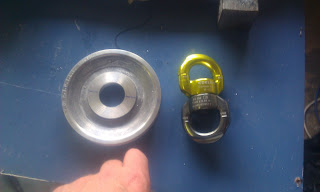 I wasted a lot of time trying to figure out the best way to feed the furling line to the drum and to retain the furling line. Tried to use dyneemaa rope, shockcord, aluminium rod, etc. to retain the line round the drum and a bored block of HMPE (UHWM) - just cutting board - to feed the line. In the end it turned out nothing worked nearly as good as my earlier solution: using a small stainless eye to feed the line in and out, and a retaining drum machined out of HMPE.